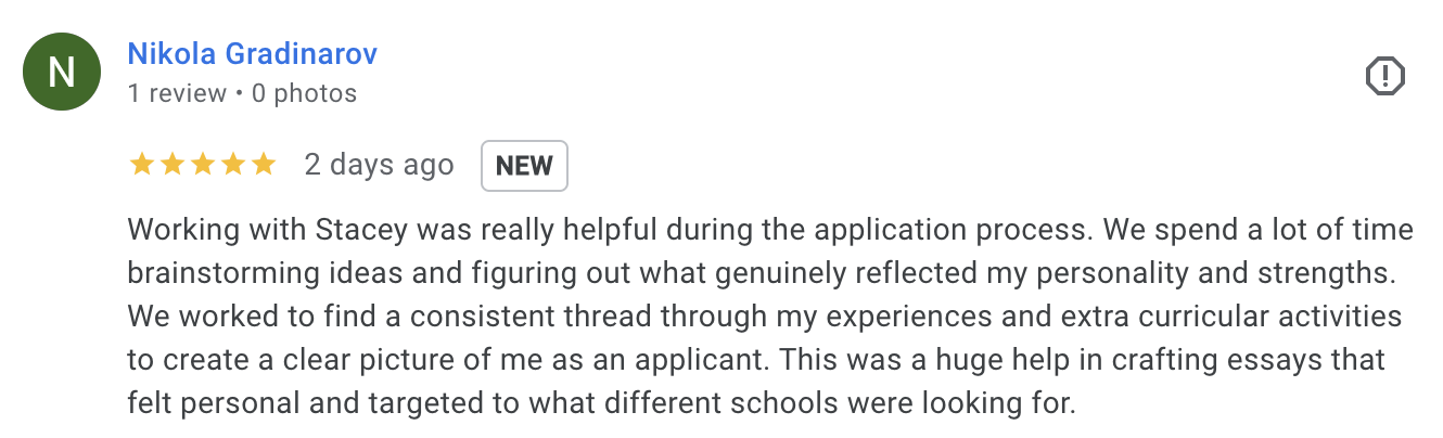 That’s exactly why students benefit from working with an experienced coach who can help them discover and write a story that stands out in competitve application stacks at admissions.